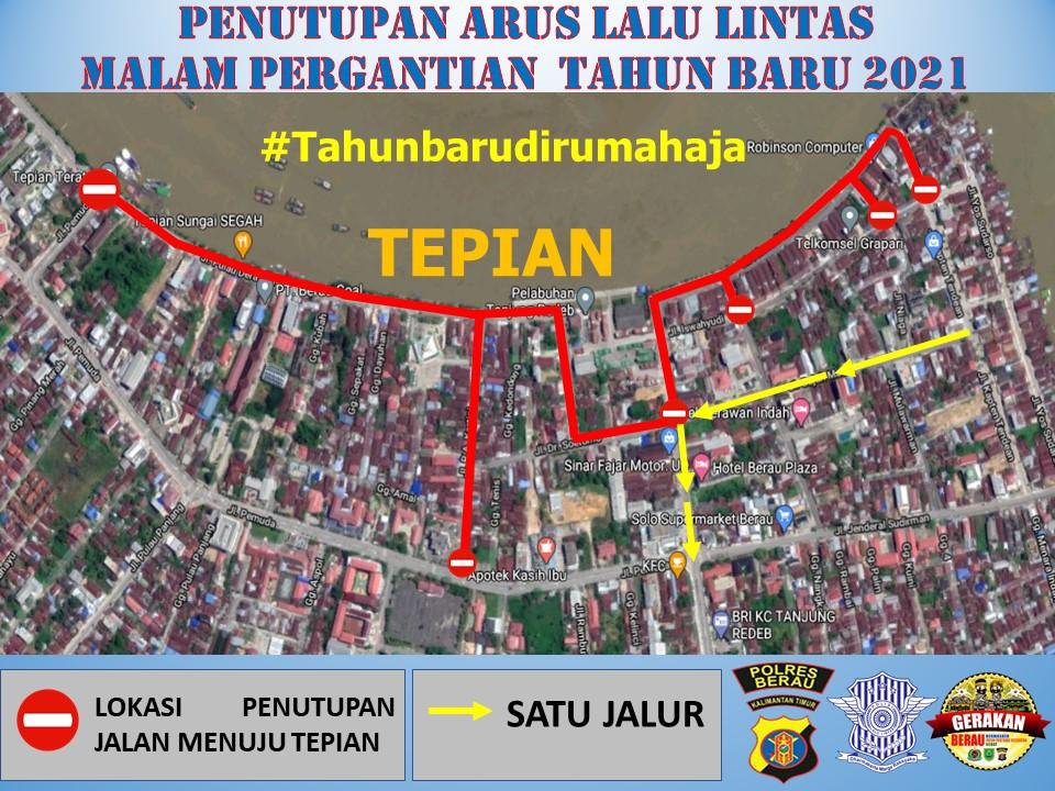 BERAUONLINE.COM, TANJUNG REDEB – Polres Berau akan melakukan penutupan sejumlah ruas jalan dan tempat-tempat yang diduga akan mendatangkan keramaian pada malam pergantian tahun baru 2021.