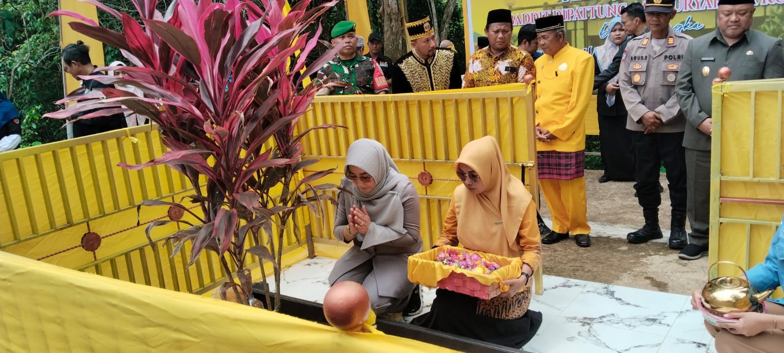 Rombongan ziarah dipimpin Ketua Dewan Adat Kesultanan Gunung Tabur, Pangeran Hadiningrat, serta turut dihadiri oleh Sultan Gunung Tabur, Adji Awang Idris; Ketua Lembaga Pemangku Adat, Endin Supandi; Bupati Berau, Sri Juniarsih Mas; dan Wakil Bupati Berau, Gamalis . Kehadiran jajaran Forkopimda, tokoh adat, perwakilan perusahaan, hingga masyarakat umum, memperlihatkan kuatnya ikatan antara pemerintah, adat, dan rakyat dalam menjaga tradisi.