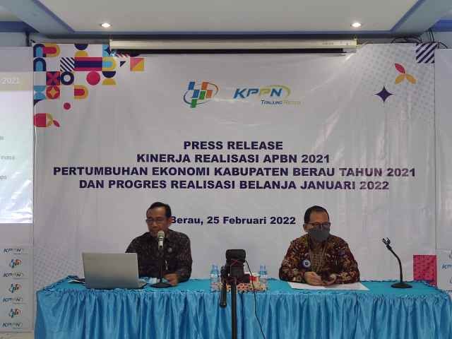 BERAUONLINE.COM, TANJUNG REDEB – Badan Pusat Statistik (BPS) Berau dan Kantor Pelayanan Perbendaharaan Negara (KPPN) Tanjung Redeb, menggelar Press Release Anggaran Pendapatan dan Belanja Negara (APBN) dan progress sampai dengan akhir Februari 2022, di ruang rapat KPPN Tanjung Redeb, pada Jumat (25/2/2022).