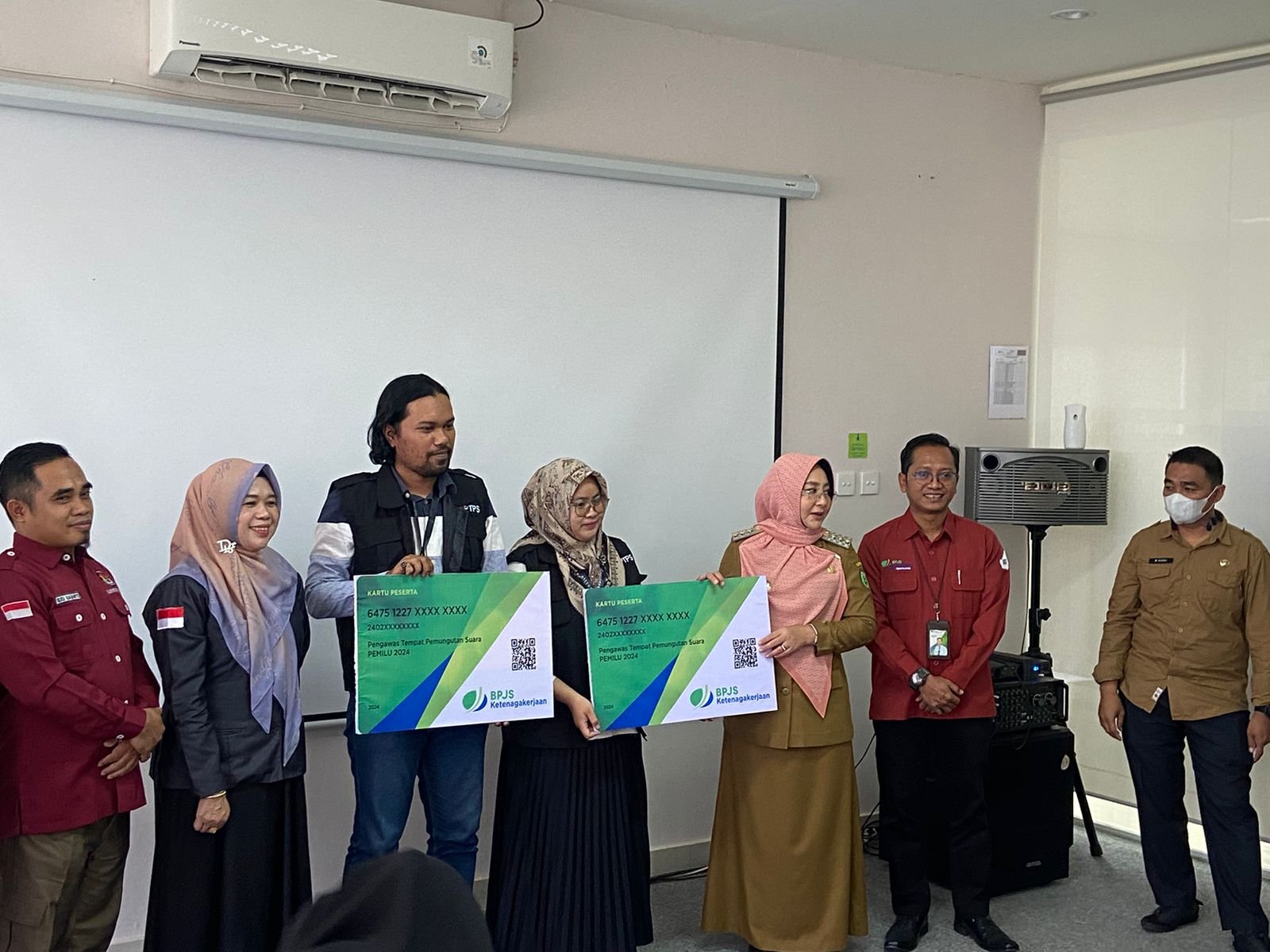 BERAUONLINE.COM, TANJUNG REDEB – Selasa, 13 Februari Bupati Berau serahkan kartu tanda peserta BPJS Ketenagakerjaan secara simbolis kepada Petugas Pengawas Kecamatan (PANWASCAM), Kelompok Penyelenggara Pemungutan Suara (KPPS), dan Pengawas Tempat Pemungutan Suara (PTPS).