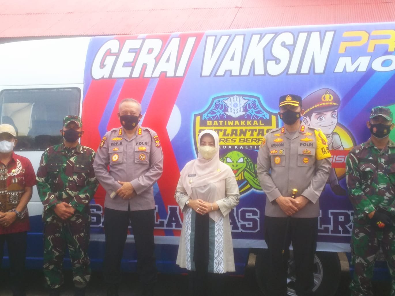 BERAUONLINE.COM, TANJUNG REDEB – Bupati Kabupaten Berau, Sri Junisrsih Mas bersama Kapolres dan Dandim Berau, mendampingi Direktur Samapta Polda Kaltim, Kombespol Edy Suswanto untuk berkunjung ke sejumlah titik pelaksanaan PPKM Darurat di Berau pada Kamis (15/7/2021).