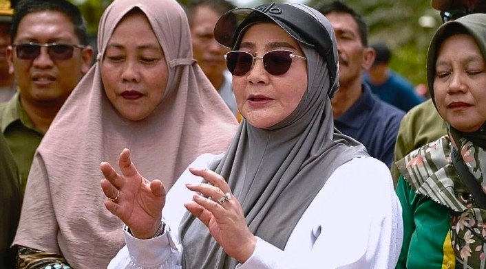 Selain menyerahkan bantuan, Bupati Sri Juniarsih juga meninjau situasi terkini di Kampung Meraang. Saat ini beberapa RT di sana tersambung karena terputusnya jalan akibat luapan air Sungai Kelay.