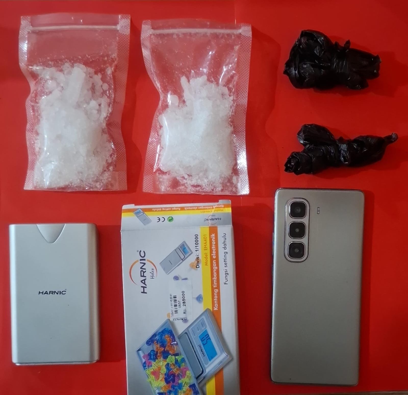 Adapun barang bukti yang diamankan meliputi dua bungkus besar sabu dengan total berat bruto 82,38 gram, dua lembar kresek hitam, satu unit timbangan digital merek Harnic, satu kotak timbangan, satu unit sepeda motor warna hitam, serta satu unit handphone warna silver. “Seluruh barang bukti langsung kami amankan untuk proses hukum lebih lanjut,” jelas AKP Agus Priyanto.