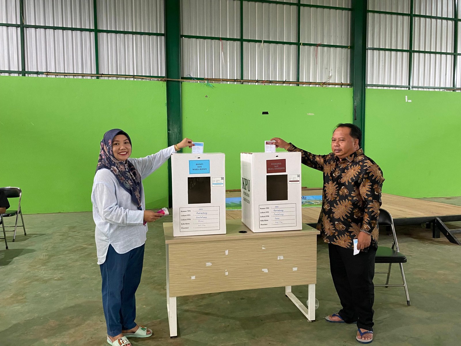 Madri Pani Di Dampingi Istri Gunakan Hak Pilih Nya Di TPS 02 Kampung Gurimbang