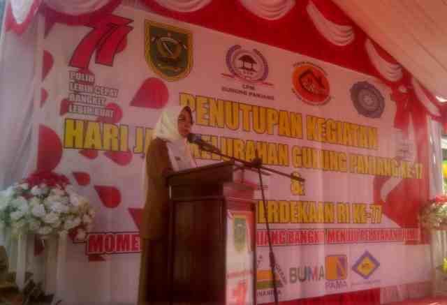 Bupati Berau Sri Juniarsih Mas menyampaikan dalam sambutan, kami selaku Pemerintah Daerah Kabupaten Berau menyambut baik dan mengapresiasi kegiatan Hari Ulang Tahun Ke-17 Kelurahan Gunung Panjang dan seluruh rangkaian acara dari awal sampai akhir.