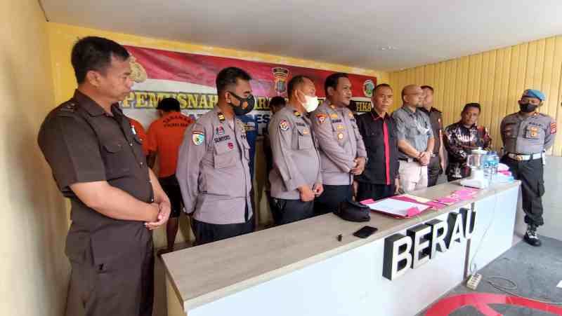 Kabag Ops Polres Berau AKP Febriadi Silvano Muabuay didampingi Kasat Resnarkoba Iptu Didin Nurdin mengatakan, pemusnahan yang berasal dari 6 kasus berbeda, dengan jumlah tersangka 9 orang.