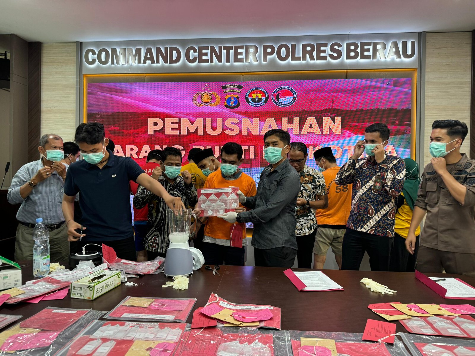 Kapolres Berau, AKBP Steyven Jonly Manopo melalui Kasat Resnarkoba, AKP Agus Priyanto mengatakan jika pemusnahan ini dilakukan hasil dari pengungkapan perkara yang dilakukan Polres Berau bersama jajaran polsek.