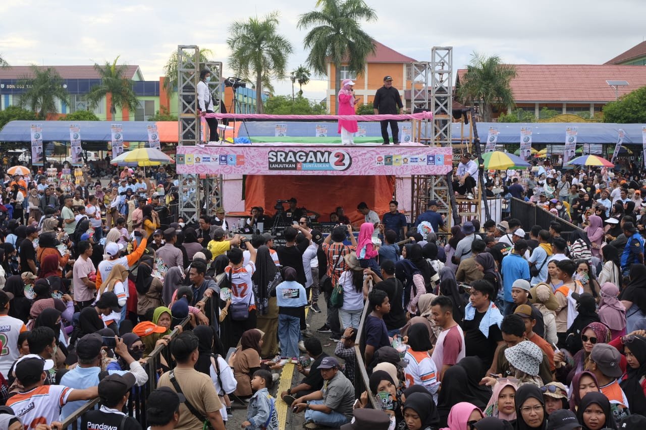 Selain menyampaikan visi-misi, paslon SraGam juga menyuguhkan hiburan spektakuler dengan menghadirkan deretan artis ibu kota seperti Wali, ST12, Vega Darwanti, Dwi Andhika, Agisnia, Yuda Irama, hingga H. Rembulan. Penampilan para artis ini berhasil menciptakan suasana kampanye yang semarak dan menghibur.