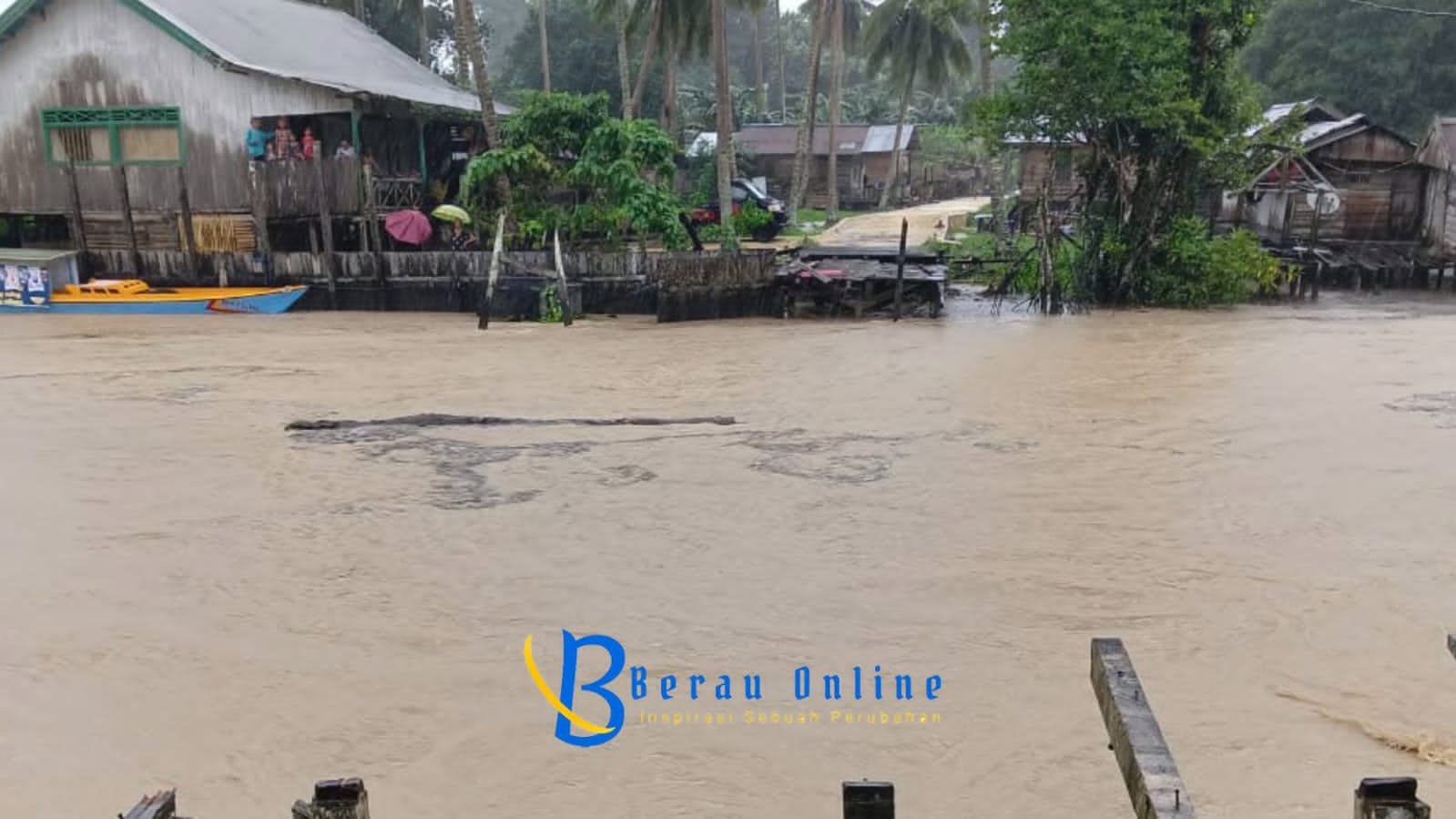 Kepala Bidang Kedaruratan dan Logistik Badan Penanggulangan Bencana Daerah (BPBD) Berau, Nofian Hidayat menyampaikan banjir menyebabkan jembatan kayu hasil swadaya Kampung Penghubung di RT 2 kampung Teluk Sumbang kembali hanyut oleh air sungai nya yang meluap.