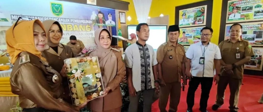 BERAUONLINE.COM, GUNUNG TABUR – Camat Gunung Tabur, Mardiatul Idalisah menyerahkan secara simbolis Rekapitulasi Usulan Musrenbang Kelurahan dan Kampung untuk Tahun 2024.